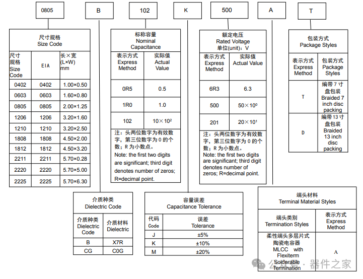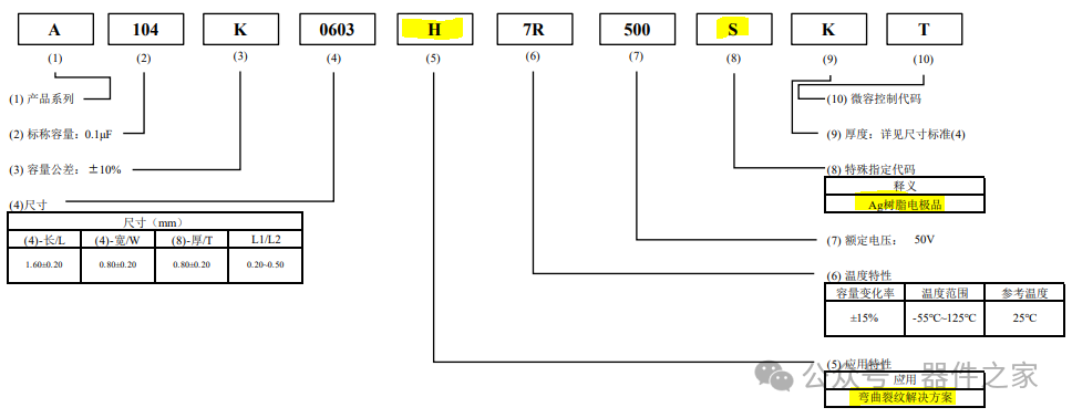 微容的標識方式和宇陽類似,可以參考下,下面為微容軟端子型號,略有差異