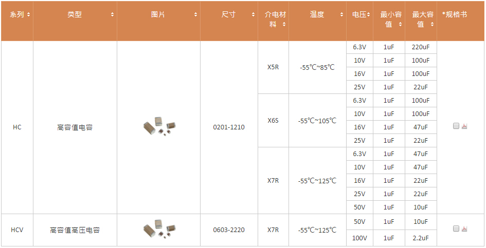 國巨的高容值電容是因應電子工業的整合趨勢、多功能及微型化的高階電容產品。搭配先進的薄膜技術,國巨的高容值電容提供的電容范圍可從10μF到220μF。相較于鉭電容,積層陶瓷電容具有小型化、可靠性高、低ESR...等若干優點。 高容值電容廣泛應用于多功能與微型化的硬盤,筆記本電腦與手機中。