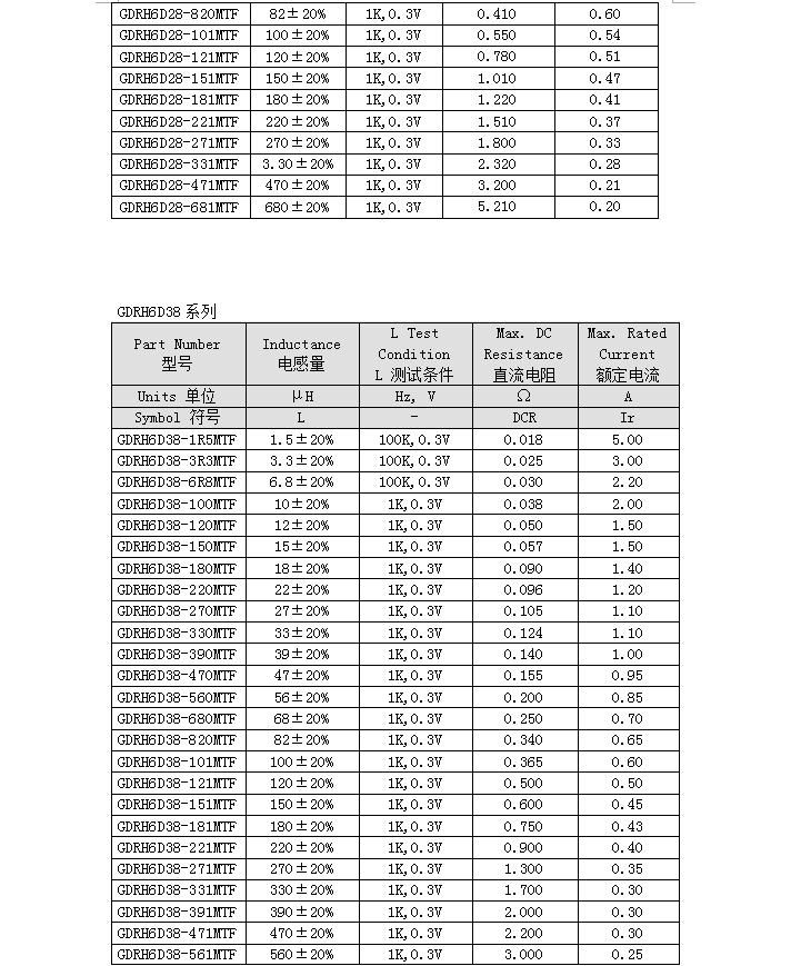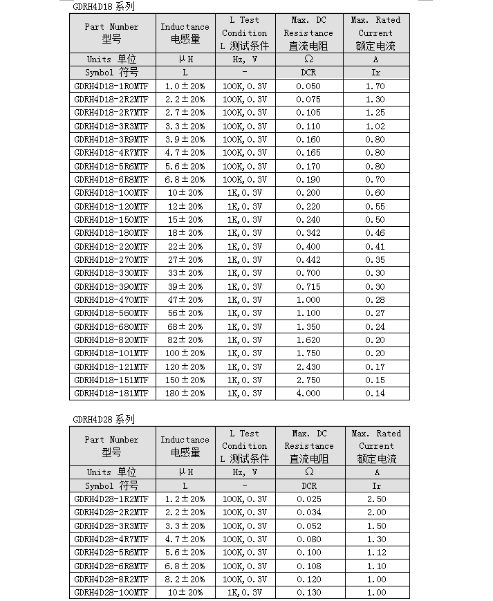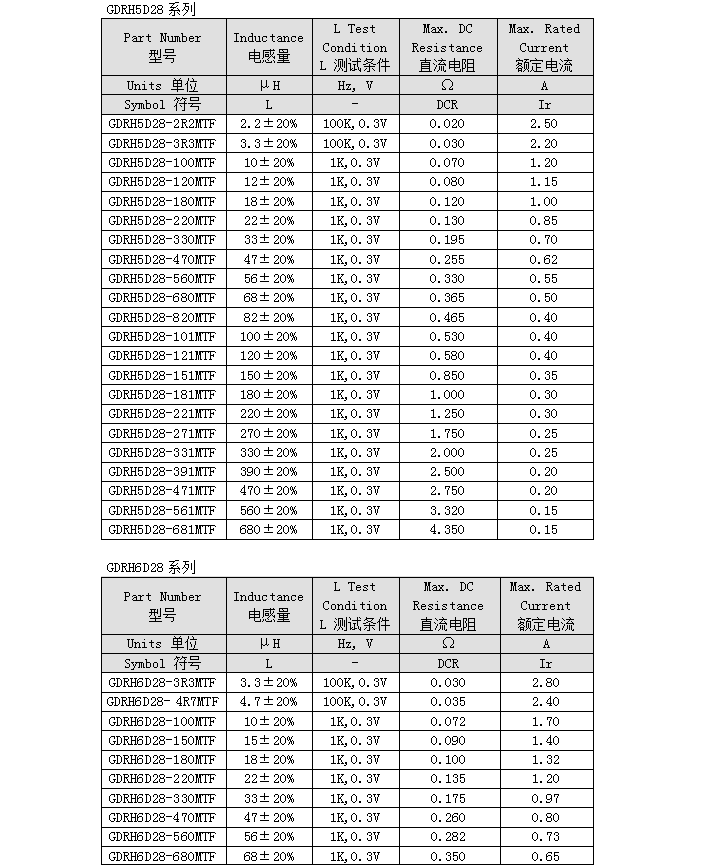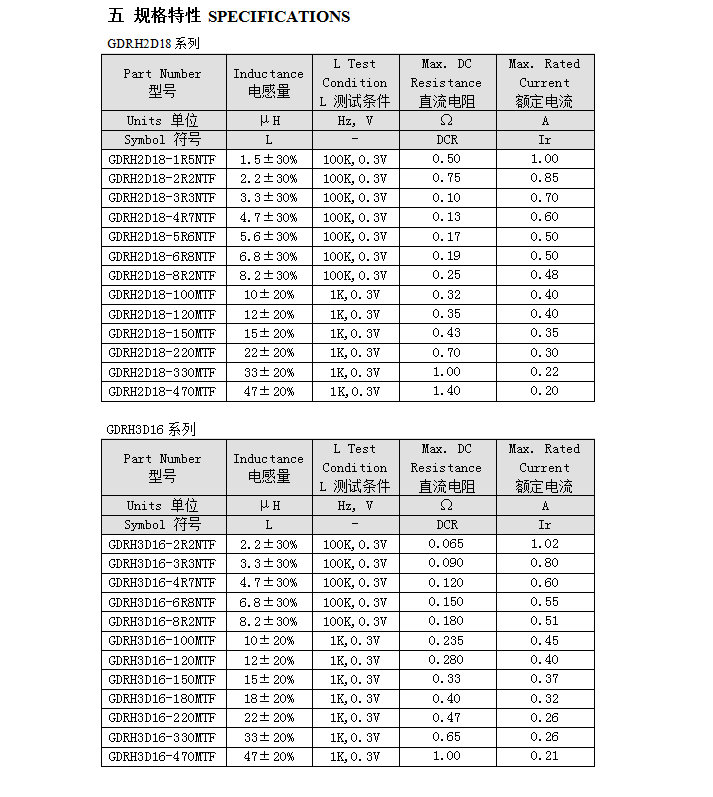 繞線片式功率電感GDRH-D編號:型號:GDRH-D類別:功率電感 |