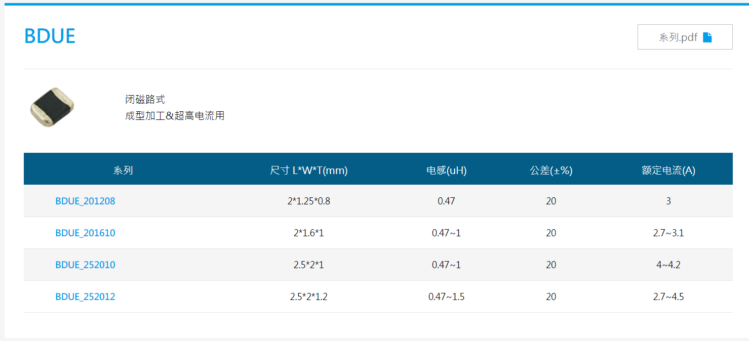 通過材料優化,BDUE系列具有更好的電氣性能性能特點:效率性能更好,Q值更高因子和更高的Irms。與BDHE系列相比,RDCBDUE系列也可減少10%至25%